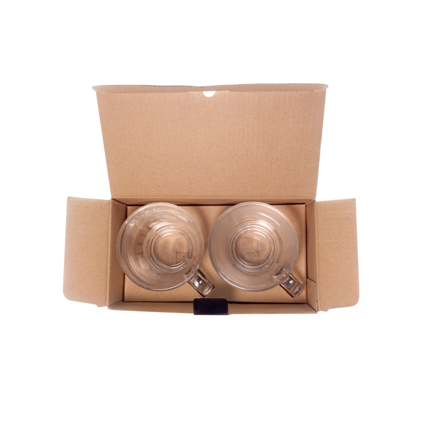 Ø 88 x 69 x 98mm. Capacidad 225ml. Vidrio. Set de 2 tazas de vidrio con aza, ideal para tomar bebidas calientes. Se presentan en caja con ambos jarros encastrados para su facil agarre y cuidado.