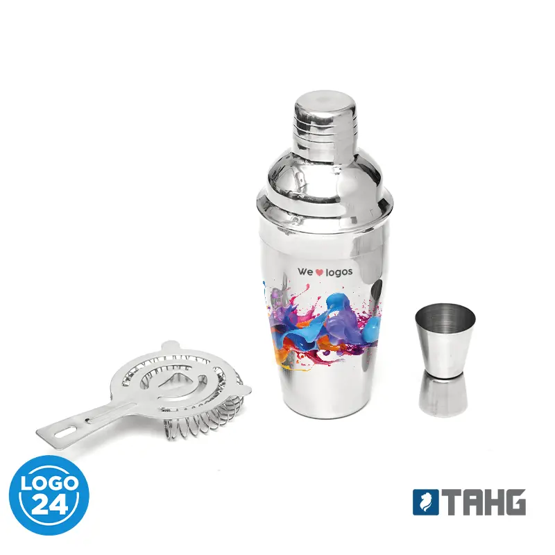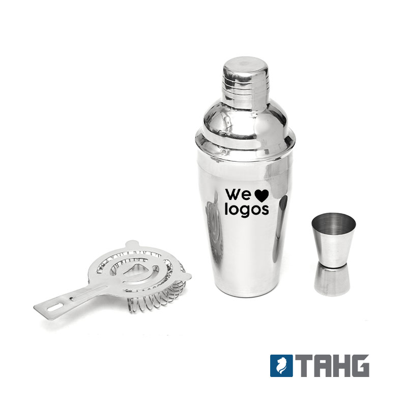 Set de Cocteleria, realizado en acero inoxidable. Medidas: 21,5 x 5,8 x 8,3 cm.