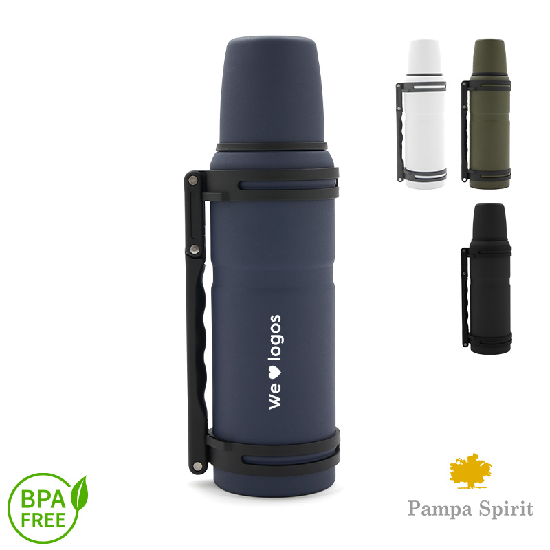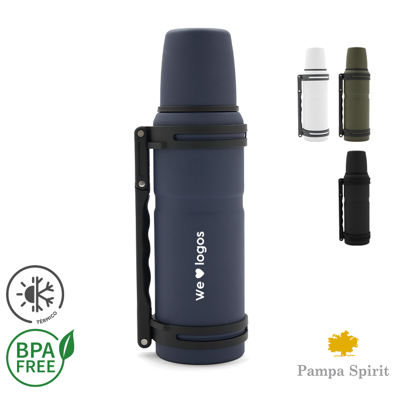 Termo de acero inoxidable 304, recubierto con esmalte especial que protege de ralladuras y golpes. Cuenta con manija plegable para facilitar el transporte y tapa con superficie plana estable para usar como taza o vaso Medidas: 32 altura x diámetro 9 cm. Mantiene el agua caliente por 12 horas. Cuenta con pico POP UP con push. Capacidad: 1,2 Litro. Producto libre de BPA. Pampa Spirit.