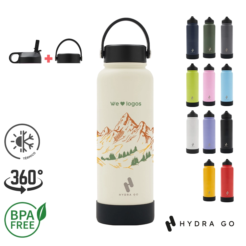 Botella isotérmica de 1200 ml, con doble pared de acero inoxidable 18/8, pintura en polvo y base de silicona antideslizante, mantiene tus bebidas frías durante 12 horas y calientes durante 8 horas. Cuenta con 2 tapas negras a rosca, para que utilices la que te resulte más cómoda: con pico y anillo para facilitar el agarre, y con manija para transportarla. Incluye 2 sorbetes y cepillo limpiador. Viene en 12 colores diferentes. Ideal para tus actividades deportivas y al aire libre. Su capacidad de 1200 ml te asegura tener suficiente líquido para hidratarte durante todo el día. No es apto para lavavajillas. No es apto para microondas. Hydra Go.