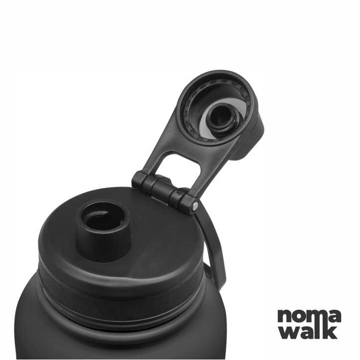Ø 9 x 26 cm. Capacidad 1000 ml. Acero inoxidable. Botella deportiva doble pared, sellada al vacío. Interior en acero 304, exterior en acero 201. Tapa con anillo de silicona, boquilla con cierre a rosca antiderrame y manija plástica para su agarre. Mantiene hasta 12 hs la temperatura de las bebidas calientes y 24 hs de las bebidas frías. Presentación en caja de regalo.