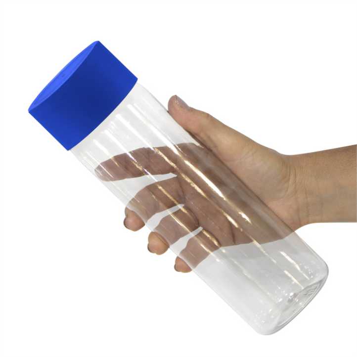 Ø 6 x 20 cm. Capacidad 550 ml. Peso de la botella: 61 gramos - Peso de la tapa: 22 gramos. Plastico PET. Cuerpo transparente. Tapa a rosca. ATENCIÓN Botella y tapa se entregan por separado. / No utilizar con bebidas gaseosas ni líquidos calientes. / El manejo de este producto es delicado. / No exponer al sol y temperaturas altas por tiempo prolongado.