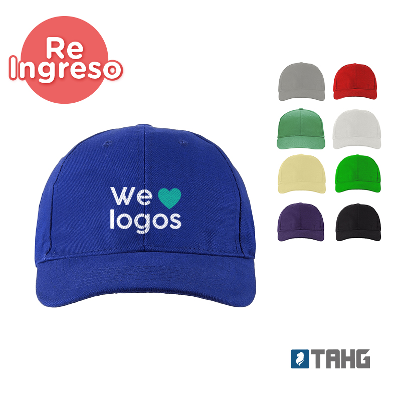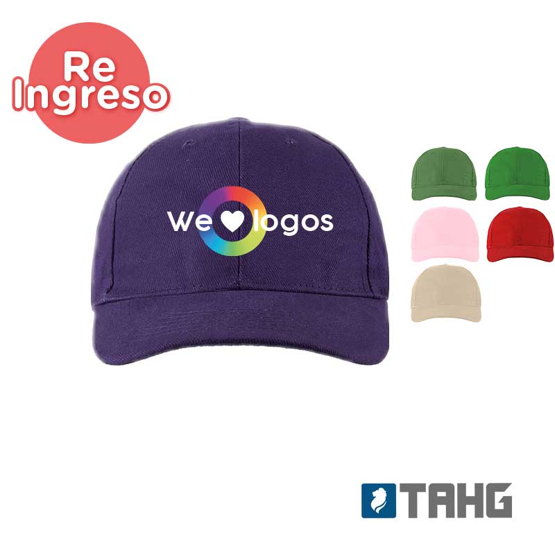 Gorro de Gabardina de 6 paneles. Material 100% algodón.Broche de metal. Tahg.