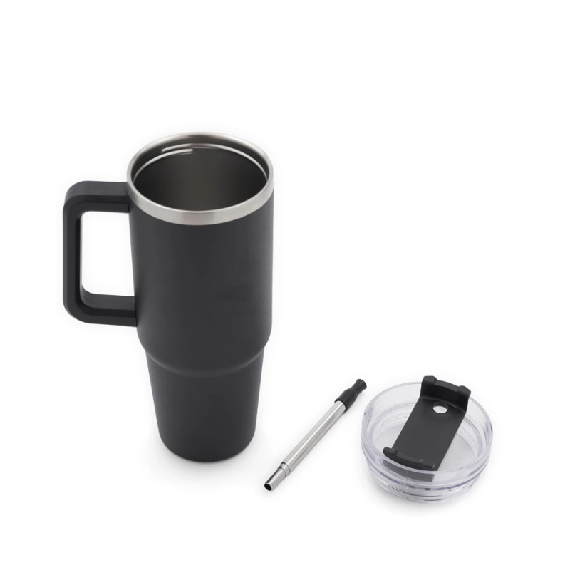Capacidad: 887 ml (30 oz) – Dimensiones: 24,5 x 9 cm (base 7 cm) – Sorbete: 26 cm – Materiales: Acero inoxidable 304 + esmaltado – Incluye: Tapa con sorbete reutilizable – Presentación: Caja kraft